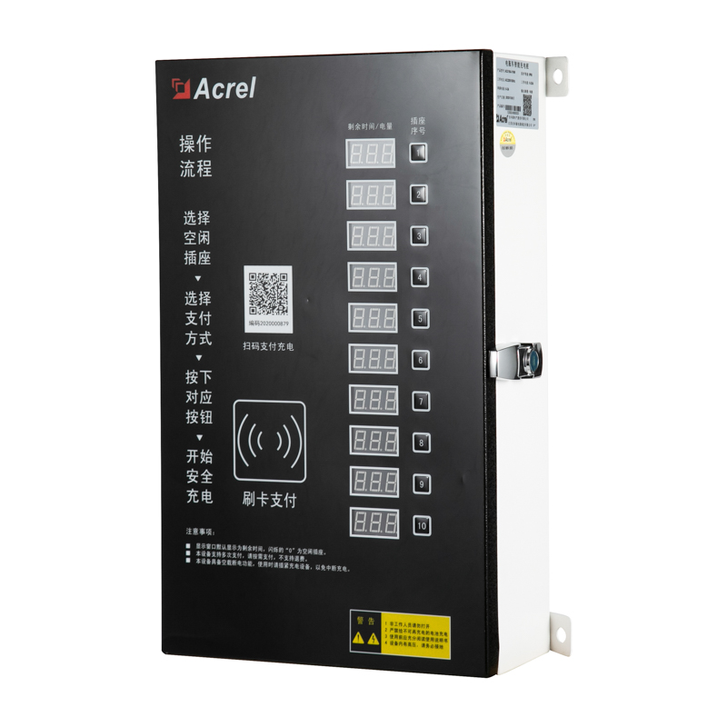 ● 電瓶車智能充電樁最大可外接10路插座,每個(gè)插座只支持一臺(tái)電瓶車通過(guò)車配充電器充電。