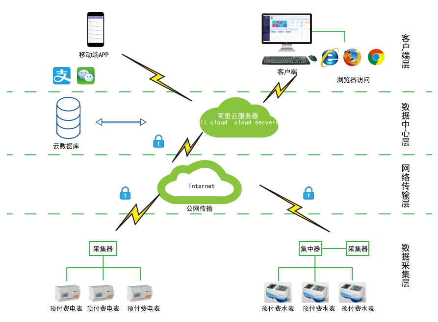 對(duì)于分布不同省、地市或同地市不同區(qū)域的連鎖商業(yè)、集團(tuán)、百貨、門店、物業(yè)、院校等業(yè)務(wù)分散,要求集中管理、線上支付,低額提醒、欠費(fèi)告警。但常規(guī)的本地插卡付費(fèi)、本地預(yù)付費(fèi)并不能完全滿足客戶管理需求,預(yù)付費(fèi)云平臺(tái)應(yīng)運(yùn)而生。AcrelCloud-3200水電預(yù)付費(fèi)云平臺(tái)無縫集成商業(yè)、物業(yè)公司、集團(tuán)企業(yè)、院校等分散布置的安科瑞DDSY/ADF系列電子式預(yù)付費(fèi)電能表、閥控智能水表等,提供微信、支付寶、銀聯(lián)等可選的在線支付方式,大大方便了用戶充值、圈存,提供預(yù)警和充值、退費(fèi)、電能消耗等記錄查詢,方便用戶和管理方的數(shù)據(jù)統(tǒng)計(jì)和財(cái)務(wù)分析,提供先交費(fèi)后使用的管控機(jī)制,大大降低了管理部門的收費(fèi)成本。應(yīng)用場所: