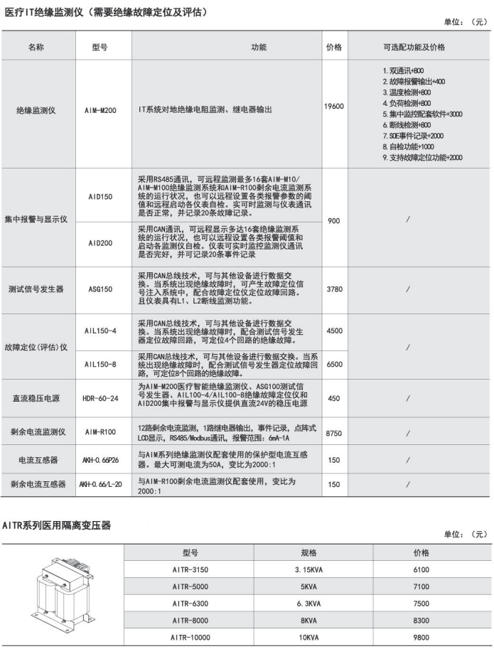 適用于醫院的手術室、ICU(CCU)監護病房等重要場所。訂貨范例: